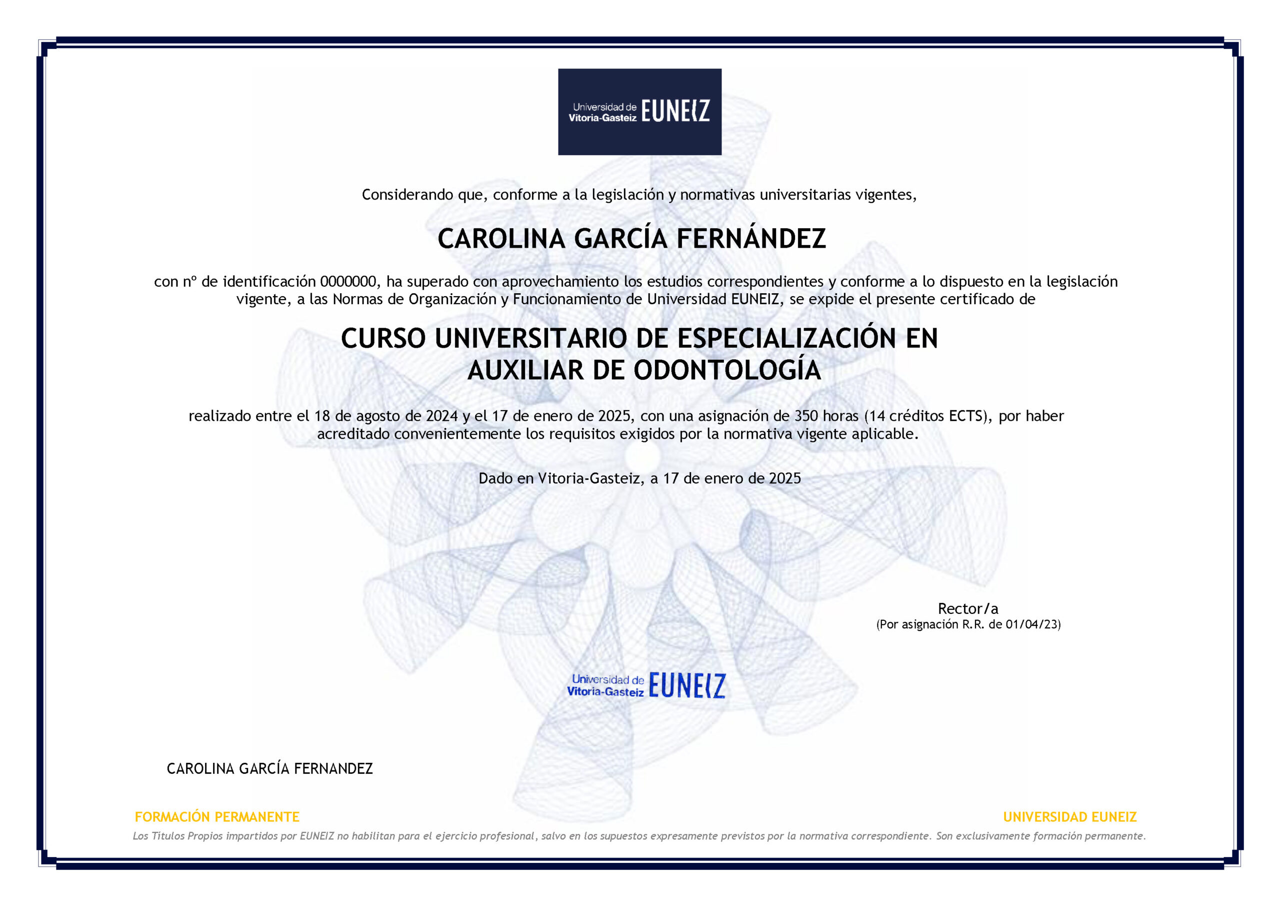 Si el título o diploma lo expide la Universidad de Vitoria, el curso se lleva a cabo dentro del Plan de Formación Permanente de la Universidad de Vitoria EUNIZ en el marco del Espacio Europeo de Educación Superior.