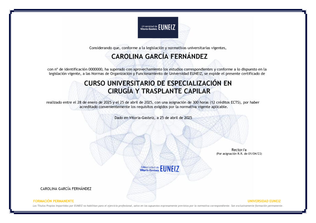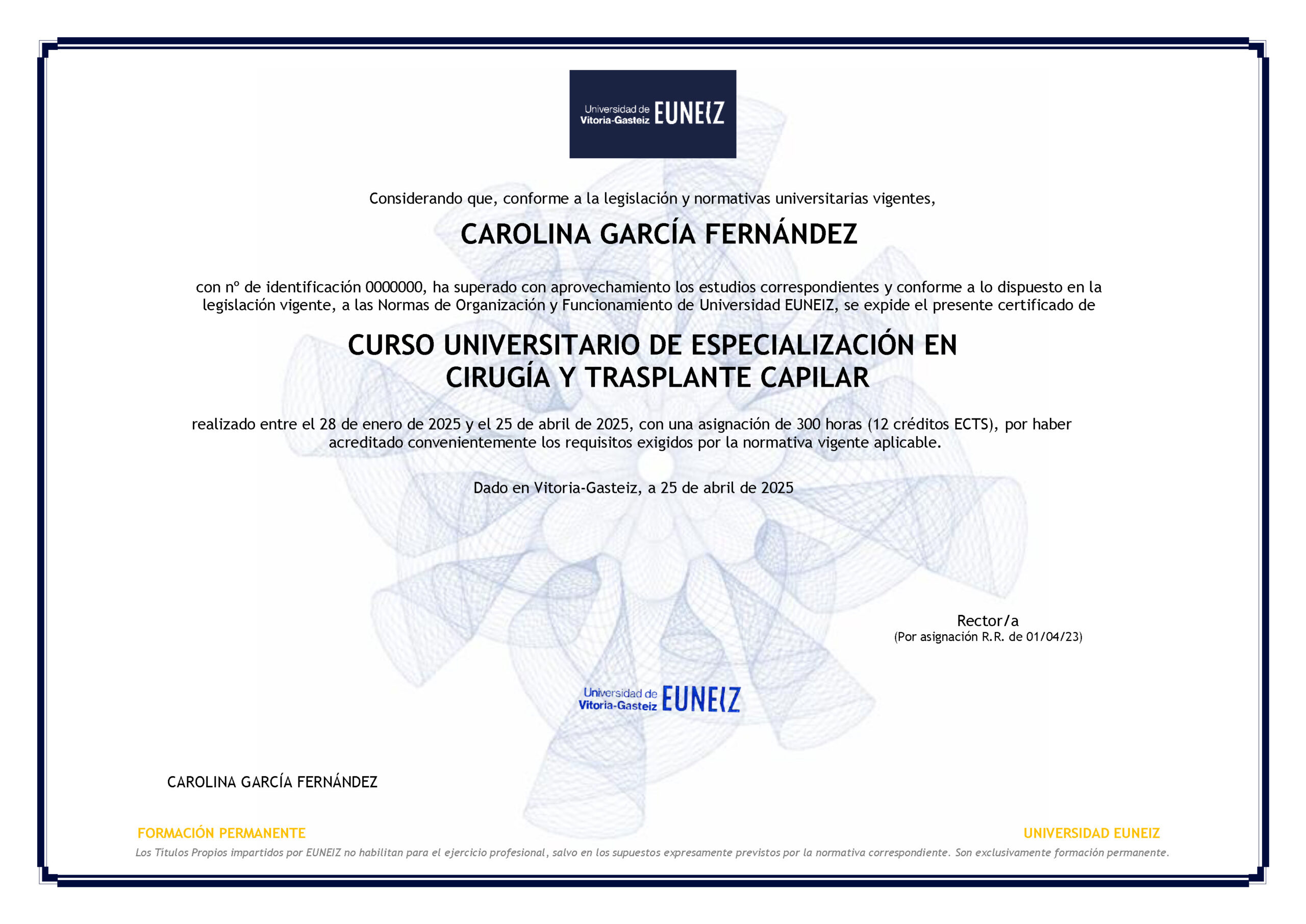 Si el título o diploma lo expide la Universidad de Vitoria, el curso se lleva a cabo dentro del Plan de Formación Permanente de la Universidad de Vitoria EUNIZ en el marco del Espacio Europeo de Educación Superior.