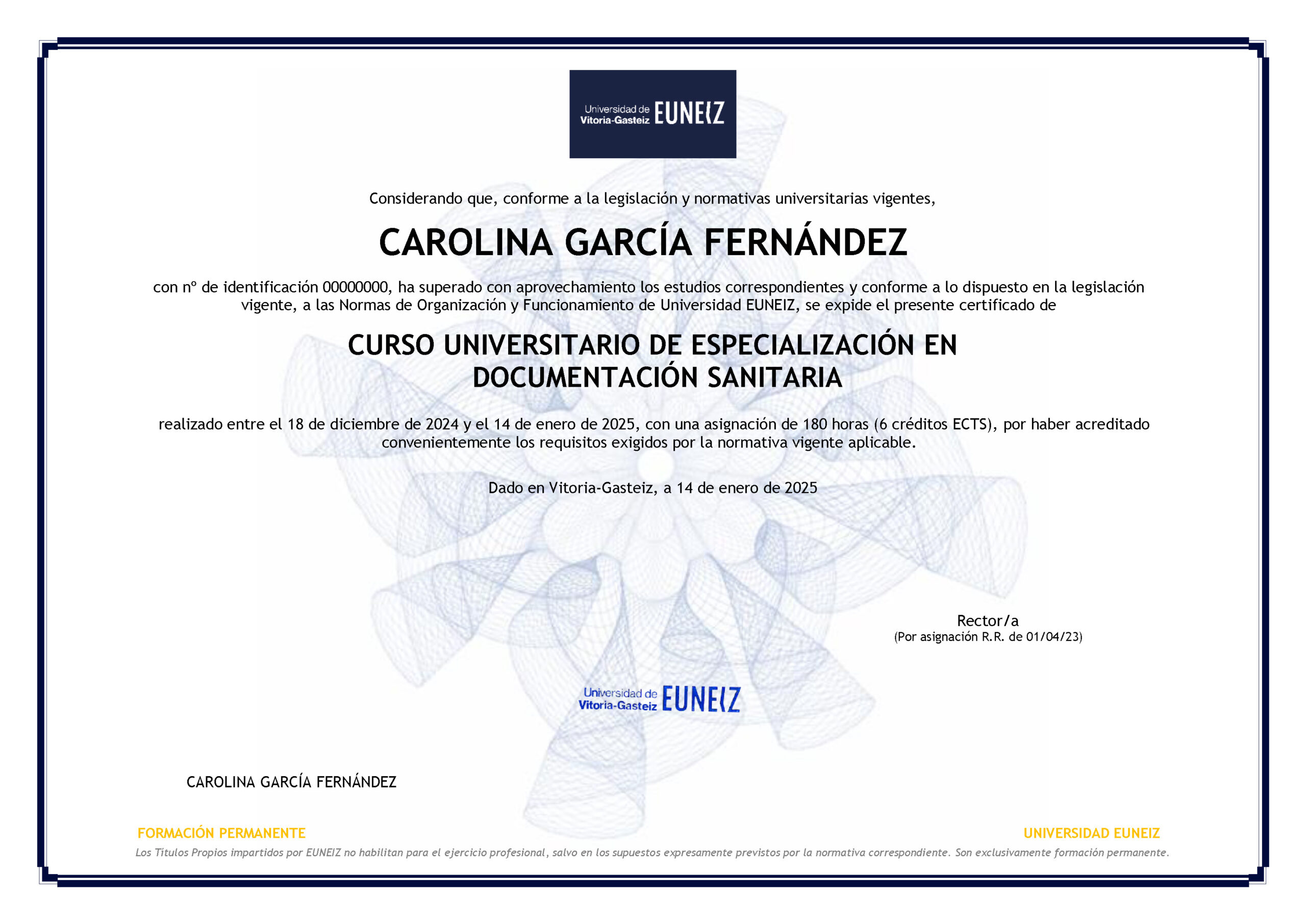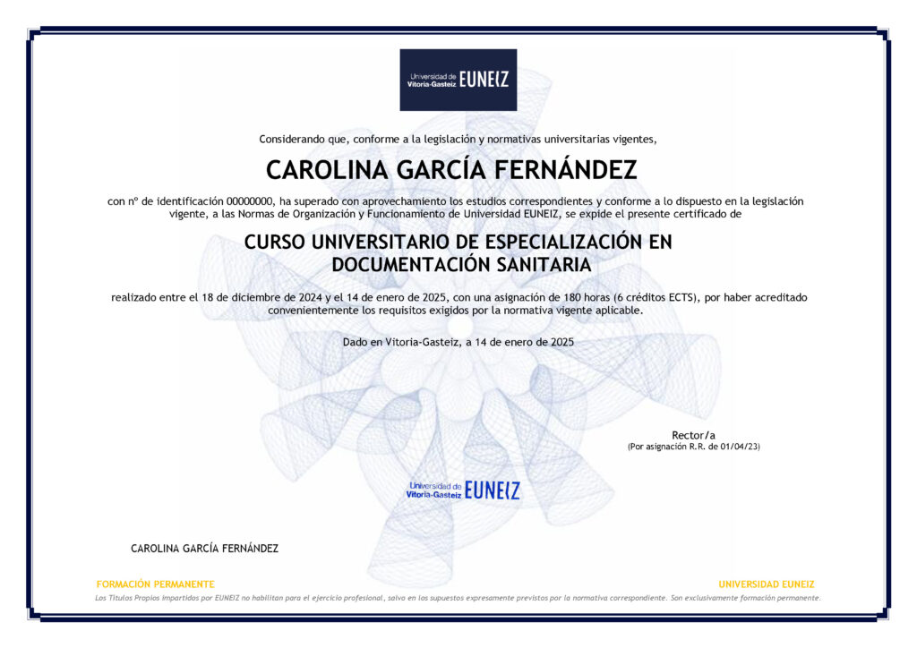 Si el título o diploma lo expide la Universidad de Vitoria, el curso se lleva a cabo dentro del Plan de Formación Permanente de la Universidad de Vitoria EUNIZ en el marco del Espacio Europeo de Educación Superior.