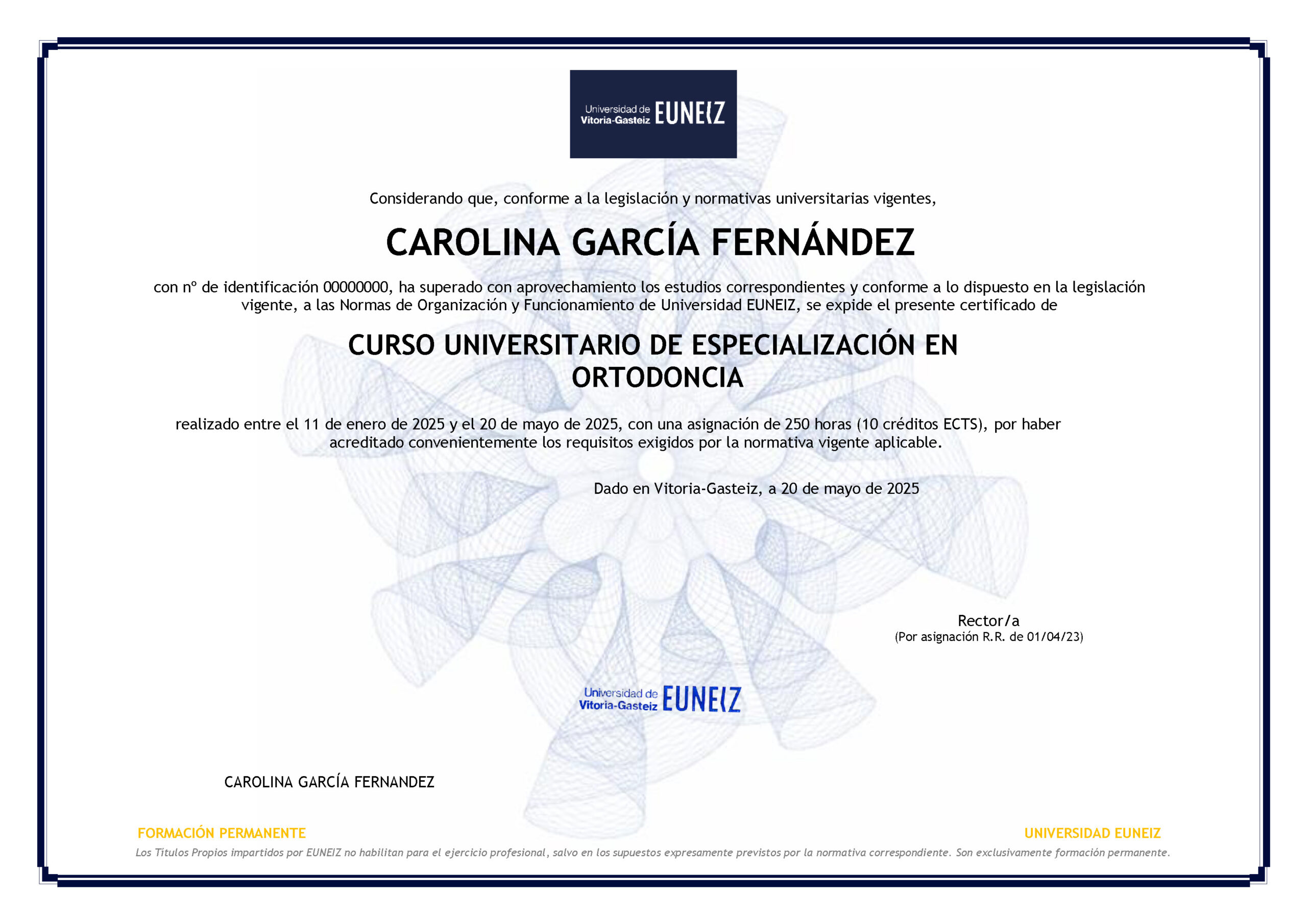 Si el título o diploma lo expide la Universidad de Vitoria, el curso se lleva a cabo dentro del Plan de Formación Permanente de la Universidad de Vitoria EUNIZ en el marco del Espacio Europeo de Educación Superior.