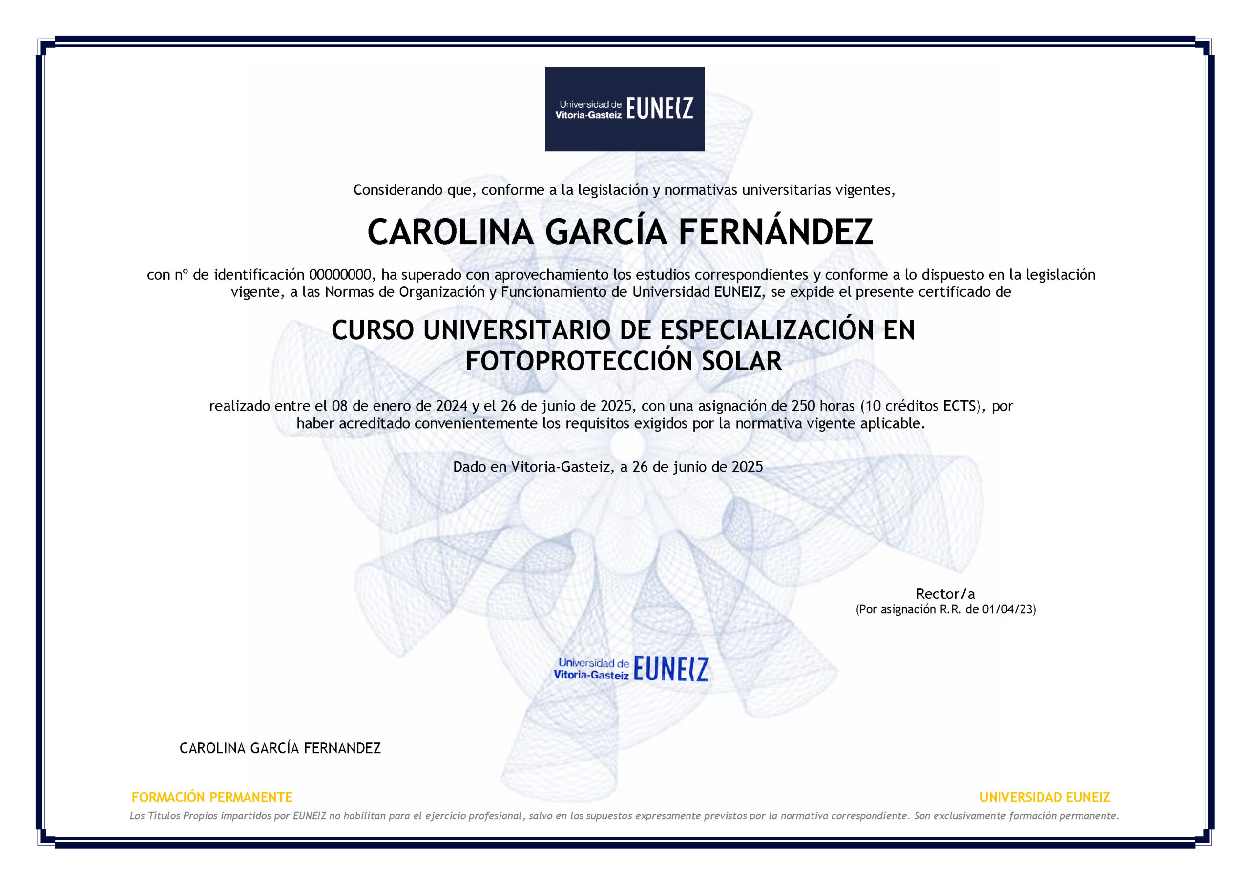Si el título o diploma lo expide la Universidad de Vitoria, el curso se lleva a cabo dentro del Plan de Formación Permanente de la Universidad de Vitoria EUNIZ en el marco del Espacio Europeo de Educación Superior.