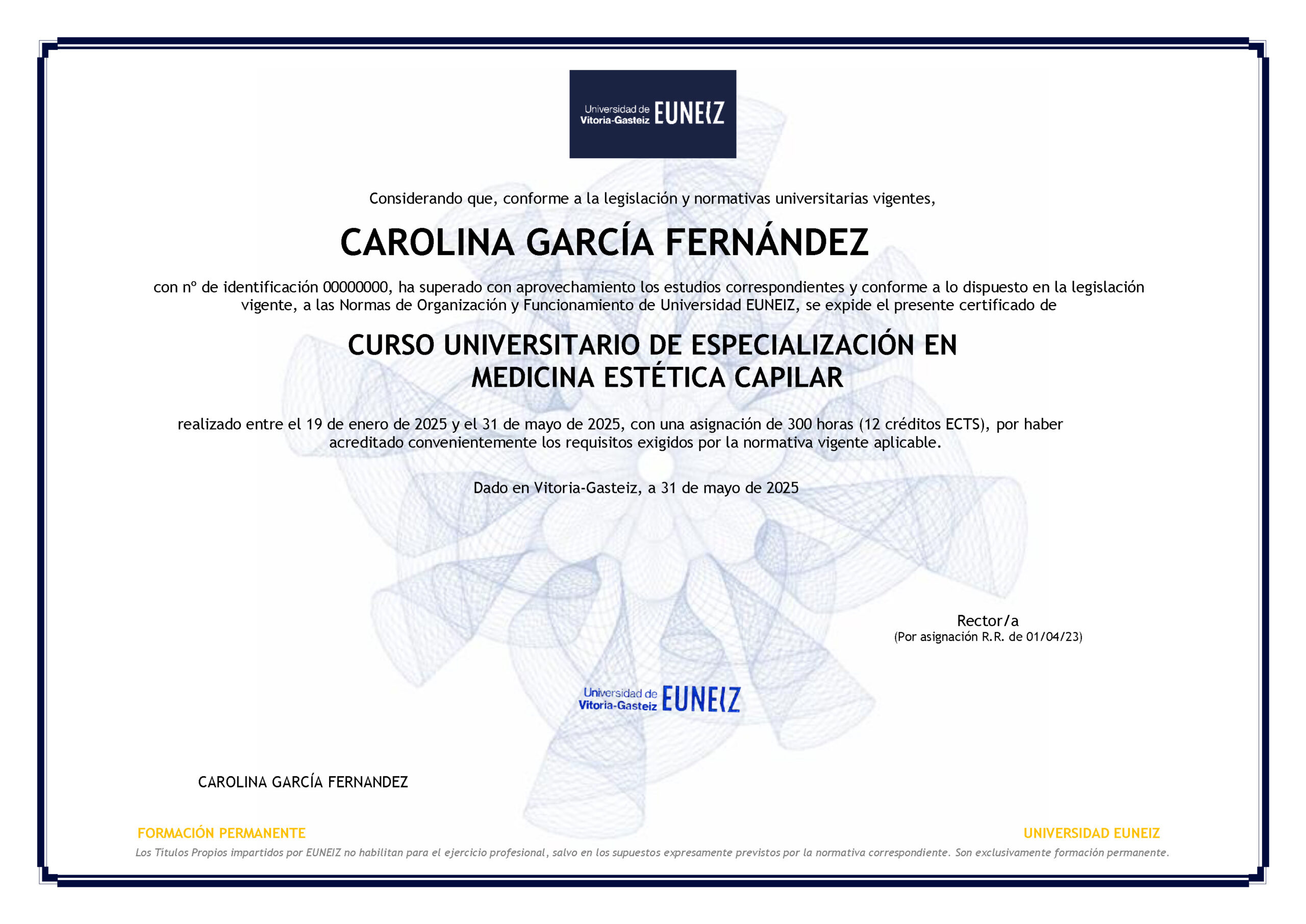 Si el título o diploma lo expide la Universidad de Vitoria, el curso se lleva a cabo dentro del Plan de Formación Permanente de la Universidad de Vitoria EUNIZ en el marco del Espacio Europeo de Educación Superior.