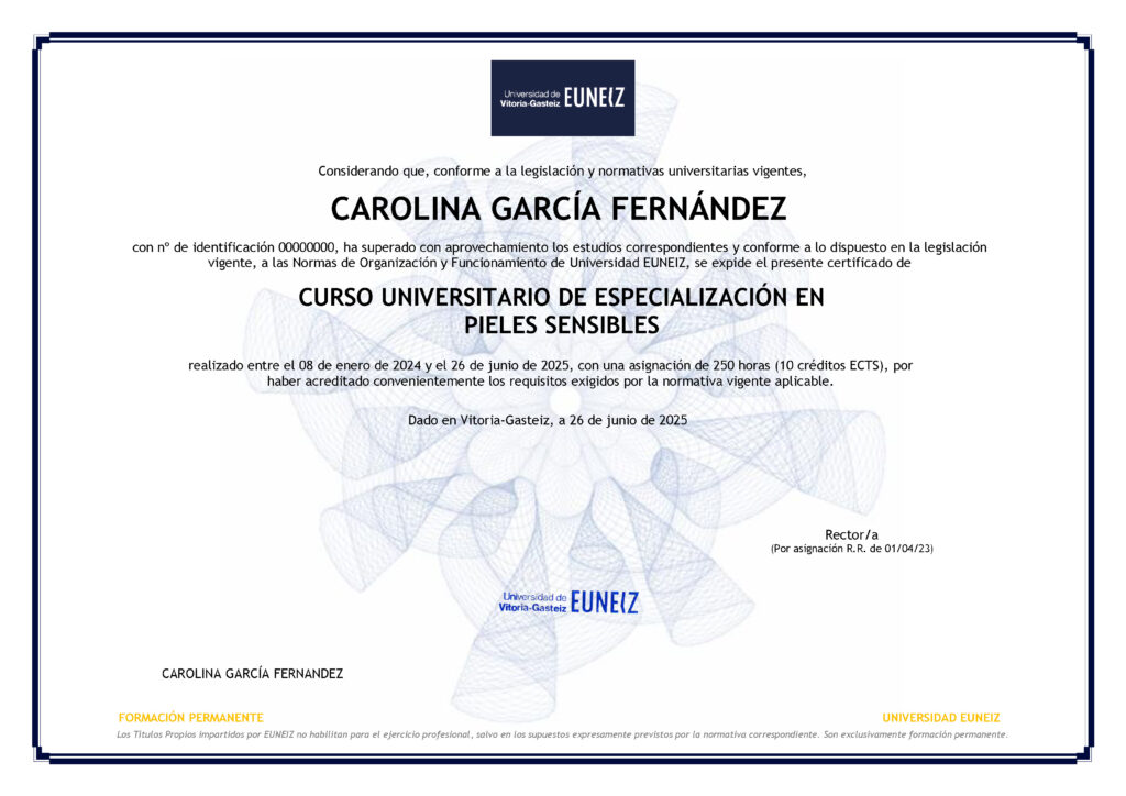 Si el título o diploma lo expide la Universidad de Vitoria, el curso se lleva a cabo dentro del Plan de Formación Permanente de la Universidad de Vitoria EUNIZ en el marco del Espacio Europeo de Educación Superior.