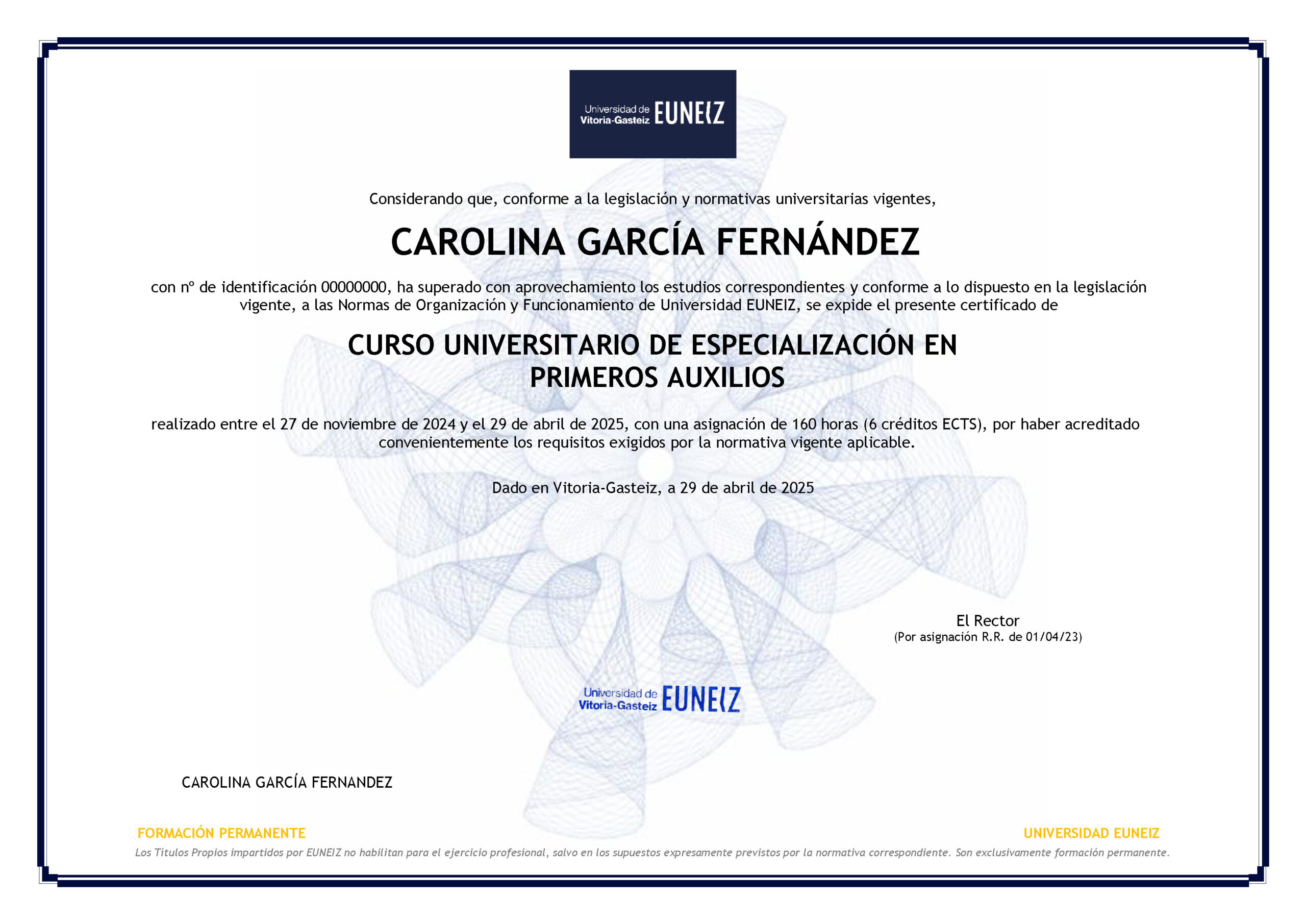 Si el título o diploma lo expide la Universidad de Vitoria, el curso se lleva a cabo dentro del Plan de Formación Permanente de la Universidad de Vitoria EUNIZ en el marco del Espacio Europeo de Educación Superior.