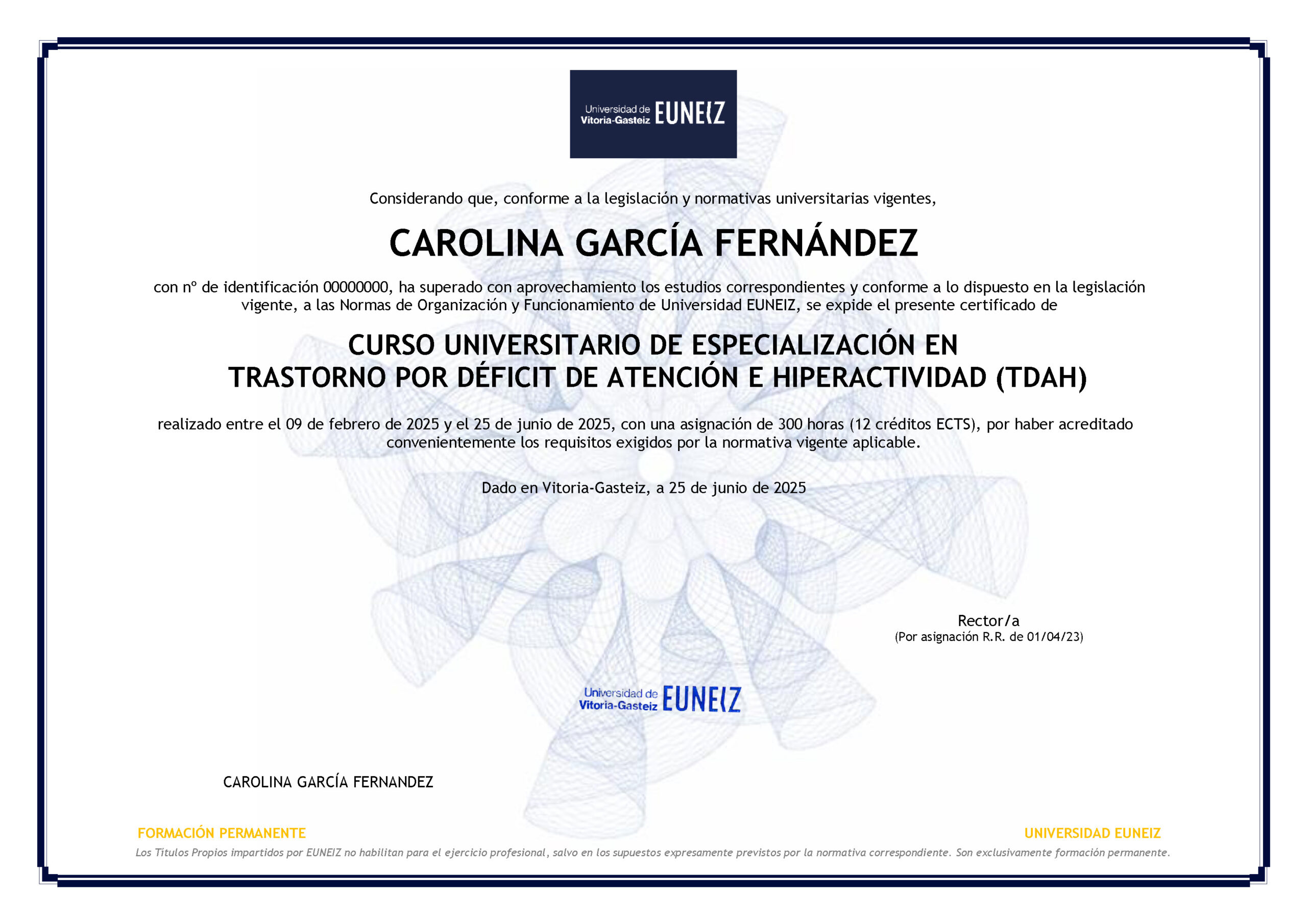 Si el título o diploma lo expide la Universidad de Vitoria, el curso se lleva a cabo dentro del Plan de Formación Permanente de la Universidad de Vitoria EUNIZ en el marco del Espacio Europeo de Educación Superior.
