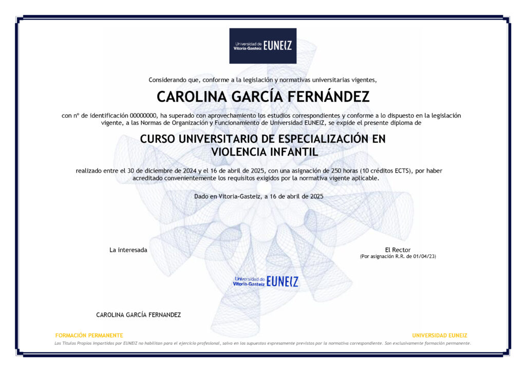 Si el título o diploma lo expide la Universidad de Vitoria, el curso se lleva a cabo dentro del Plan de Formación Permanente de la Universidad de Vitoria EUNIZ en el marco del Espacio Europeo de Educación Superior.